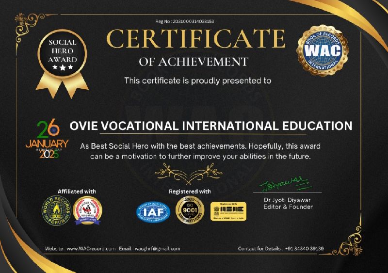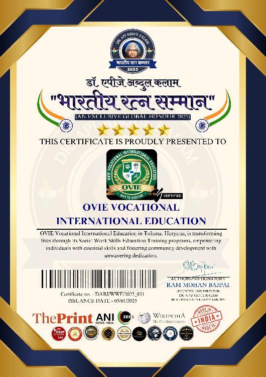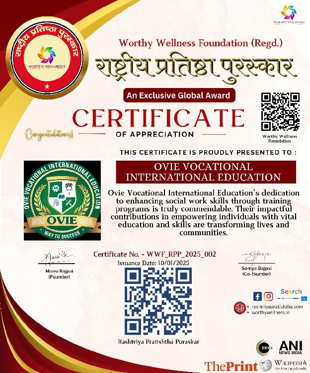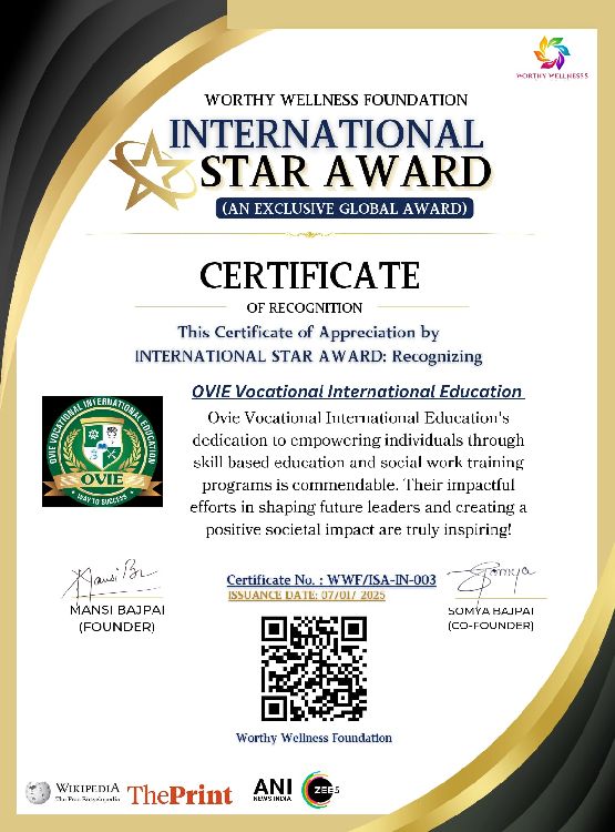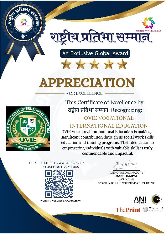 Ovie Vocational International Education Power By GRKVC PVT.LTD. We are well known group for providing Training Partner based computer courses, NTT, PTT, CTT, child care education, Nanny Care Course, Skill Development Course and Fire and Safety courses, Management courses, Account and Finance courses, Hotel and Tourism Courses, Textile and Designing Courses, Food and Agriculture Courses, Vocational Education Courses, Beauty and Fashion Technology Courses, Yoga and Sports Courses, Media and Journalism Courses, Paramedical Sciences Courses and Information and Technology Courses,