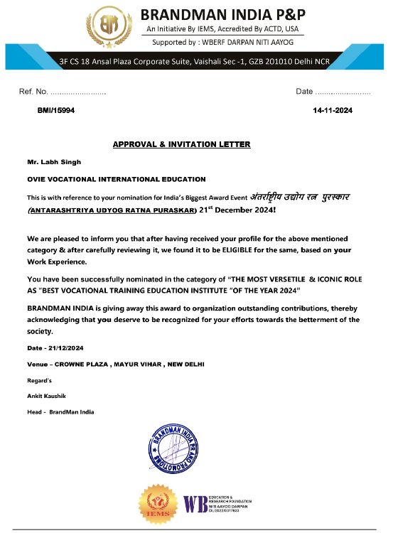 OVIE INDIA has been awarded with various awards & laurels for quality education